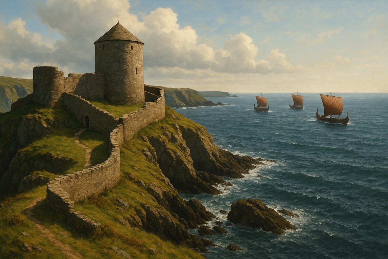 The name itself hints at the terrain. Cornu in Latin refers to a horn or peninsula—Cornwall meaning the land at the horn’s edge. Geography mattered. This was a maritime society, culturally and economically shaped by its exposure to the sea. Long before Viking sails appeared on the horizon, the Cornish had already developed a defensive posture against Irish and Welsh raiders. They understood seaborne conflict.