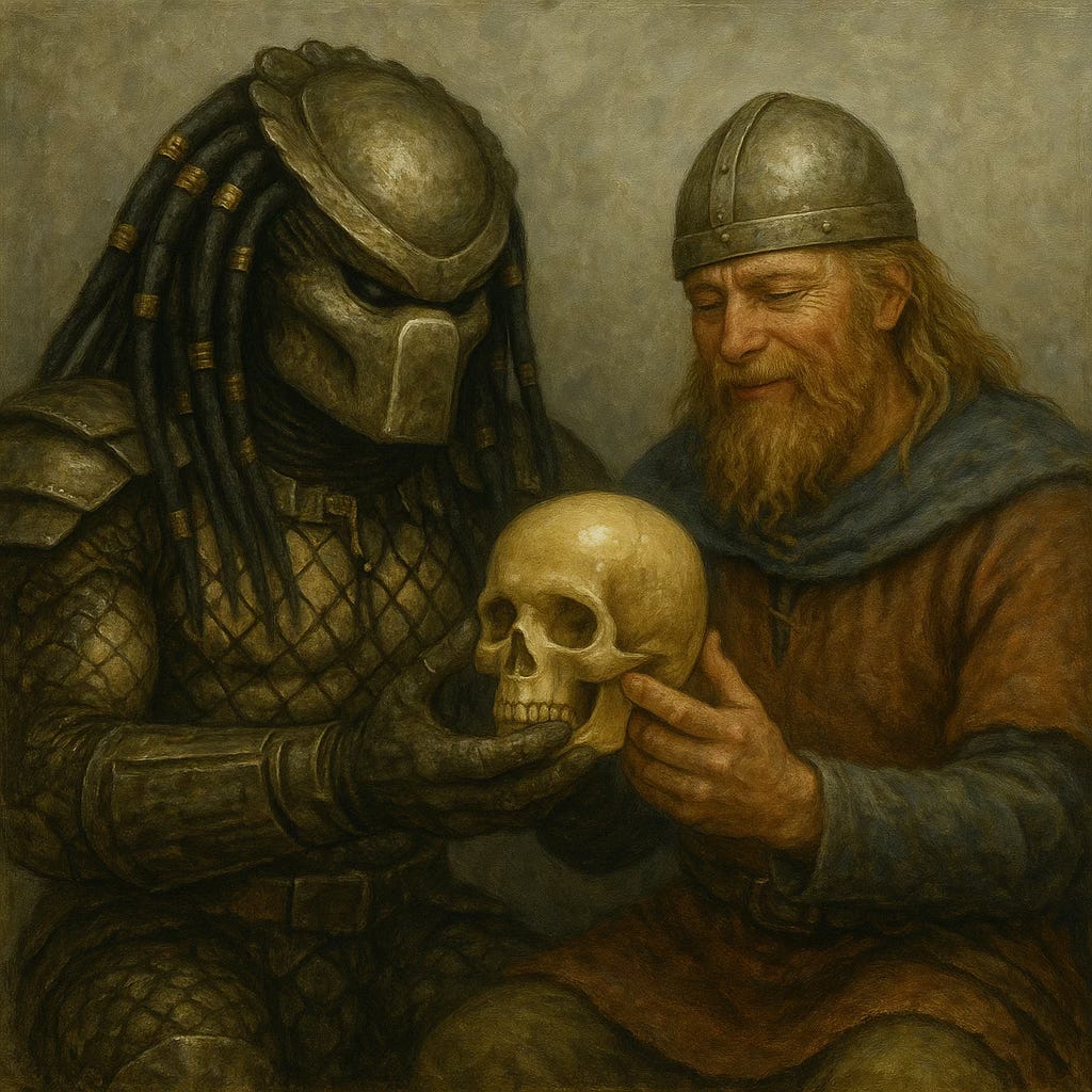 And that’s where my brain jumped to Predator. That iconic image of a creature collecting skulls as trophies suddenly didn’t feel so alien. The Vikings may not have been intergalactic hunters. Still, they had a complex, perhaps even ritualistic, fascination with human heads, as so many other human cultures have had (in our conversation, Martin pointed out that the Celts were much more skull-crazy than the Vikings).